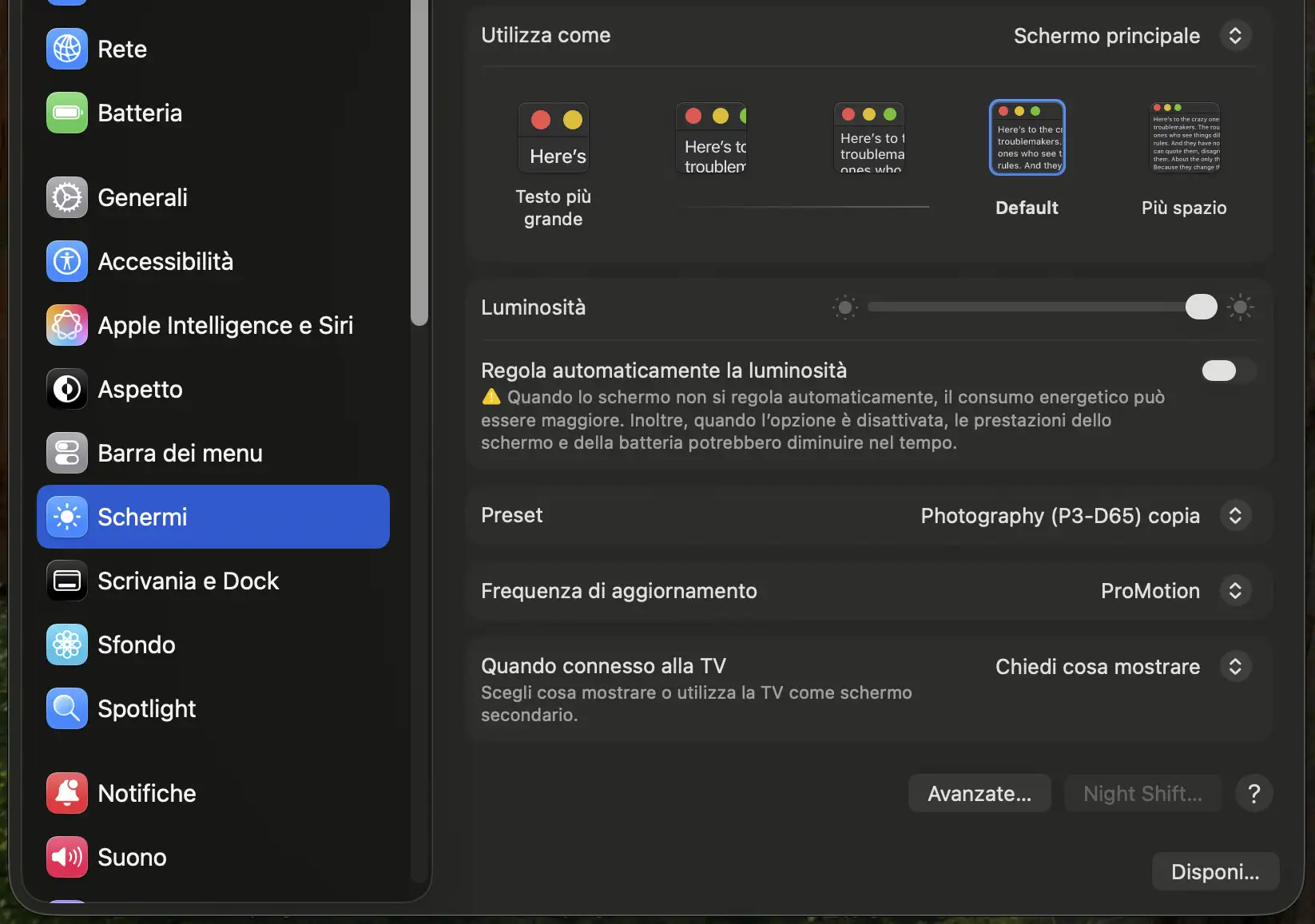 Tip: save it with a clear name, e.g. Photography P3 D65 120. The display may dim slightly and True Tone will be disabled automatically.